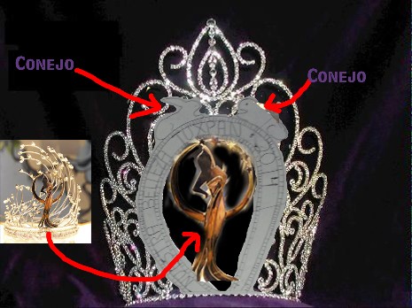 en esta imagen mostramos las ideas que trajo un cliente de Tuxpan Jalisco que queria una corona muy alta convinando elementos del simbolo de la ciudad que son los conejos asi como el simbolo de la mujer de cristal en el centro